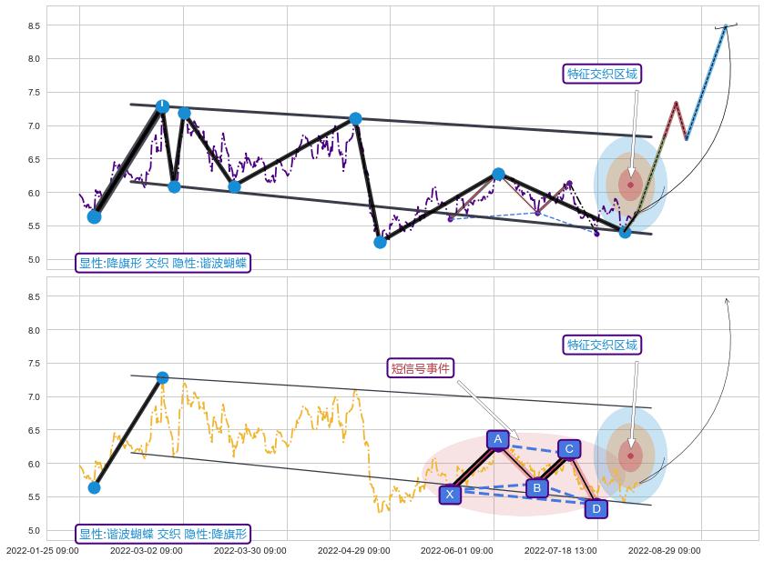 ➢ 谐波蝴蝶属【短级别信号事件】降旗形属【长级别信号事件】长短周期组合信号事件, 短长事件长度比27.00%