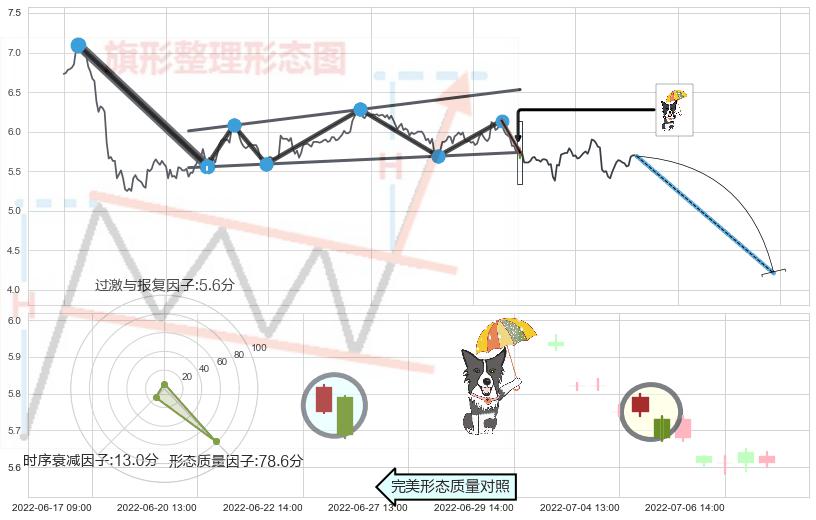 ➢ 【卖1】: 激进型 卖点→(07-05:13: 5.74 )形成突破升⚑旗形【整理】形态