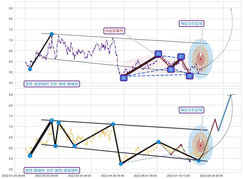 ➢ 谐波伽利属【中级别信号事件】降旗形属【长级别信号事件】中长周期组合信号事件,中长事件长度比38.21%