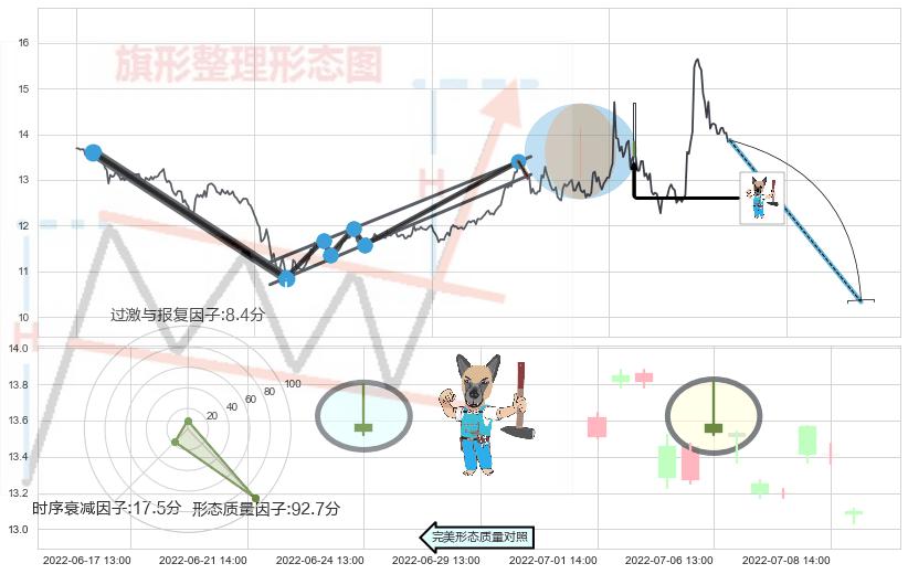 ➢ 看跌(高位倒锤头)流星线 🔜 升旗形支撑破位转换阻力下跌 综合量化分数:48.01 【中性】