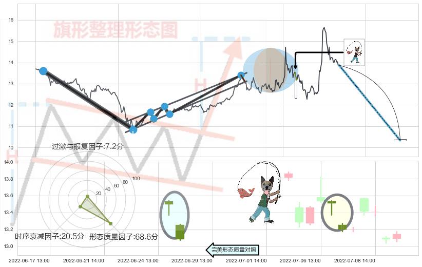 ➢ 【卖1】: 激进型 卖点→(06-08:13: 13.09 )形成突破升⚑旗形【整理】形态