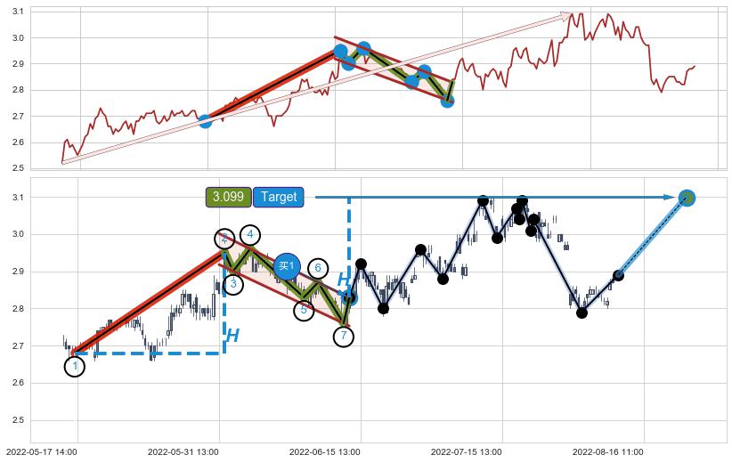 ➢ 收盘价(07-19:14: 3.070 )→再次回踩→第一根k线低点(07-13:14: 3.060 )