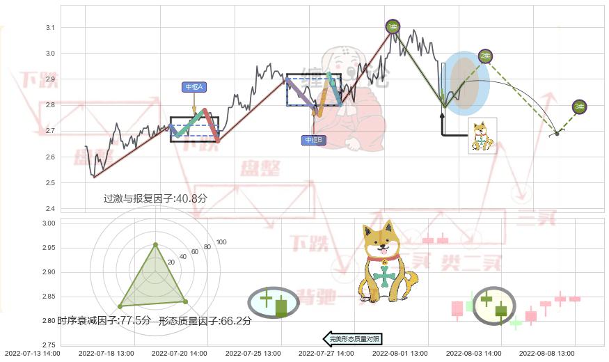 ➣ 【中枢B】:06-08:09-06-17:10,中枢由4笔构成,共37交易小时, ZG=2.900, ZD=2.800