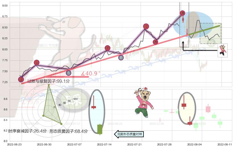 ➣ 2022-06-14 11:00-2022-08-03 13:00上升趋势存在反转[风险],其原上升趋势的支撑位(8.54)已破位[强阻力信号],原上升趋势角度: 40.9˚