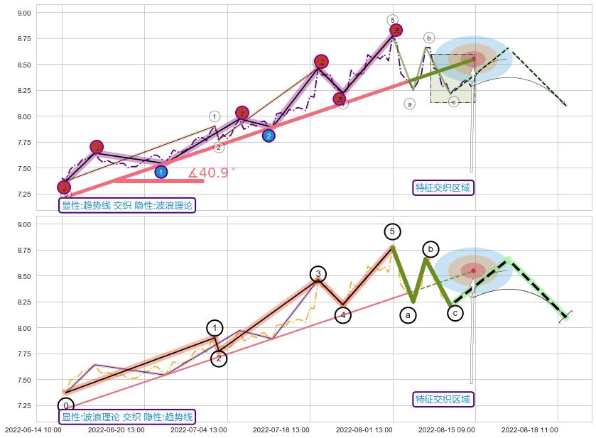 ➢ 2022-06-14 11:00-2022-08-03 13:00上升趋势存在反转[风险],其原上升趋势的支撑位(8.54)已破位[强阻力信号],原上升趋势角度: 40.9˚