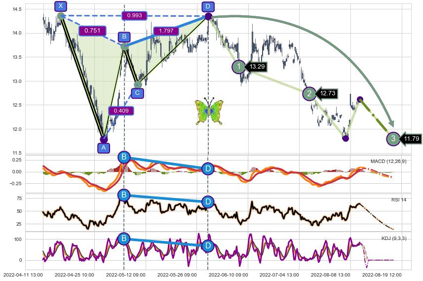 ➣ 已完成【蝴蝶】形态起点X: 04-15:09, 终点D: 05-30:10, 共145交易小时