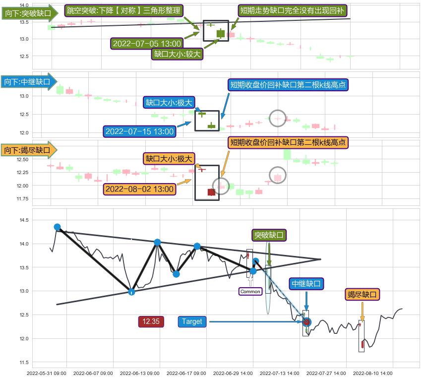 ➢ 2022-08-02 13:00形成:向下跳空【竭尽】缺口