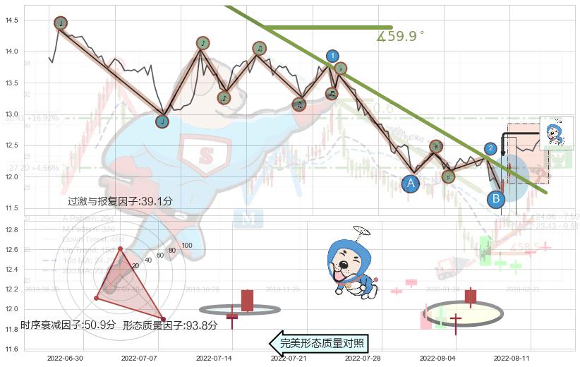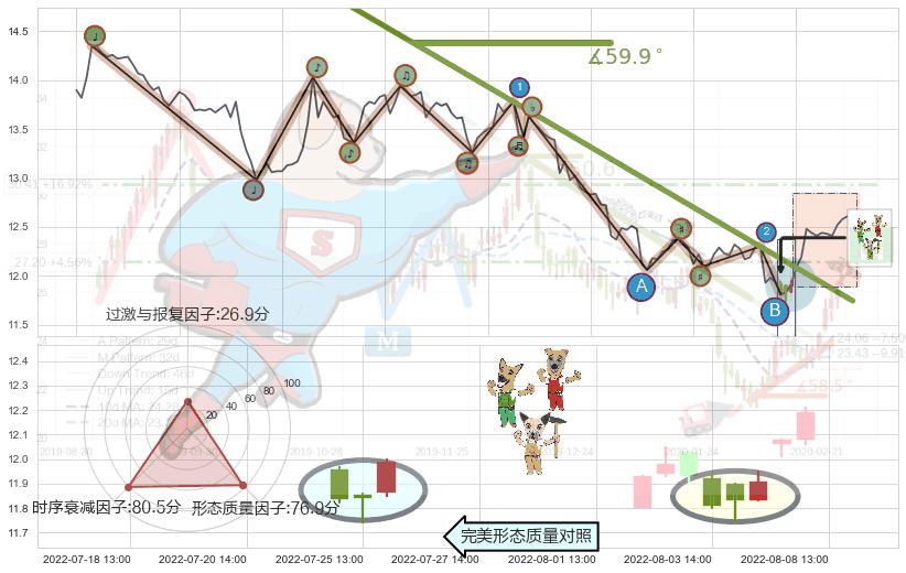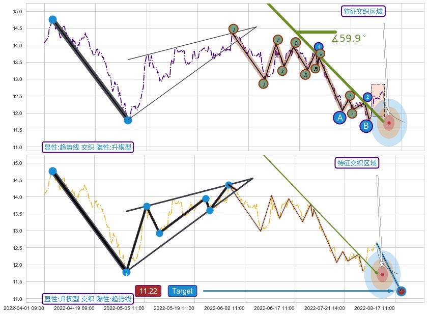 ➢ 2022-05-30 10:00-2022-08-12 13:00下跌趋势存在反转上涨[机会],其原下跌趋势的阻力位(11.74)已被突破[强支撑信号],原下跌趋势角度: 59.9˚