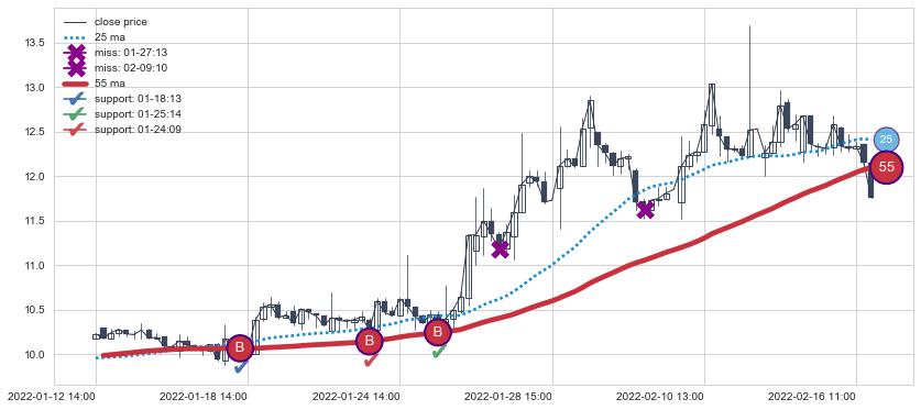 ➣ 180小时均线于(07-04 13:00: 11.52)形成【金叉】基于【金叉历史模型】预测金叉后最高波峰价格: 13.21, 金叉后最高价格12.58,虽然还未上涨超出预测最高波峰价格,但横盘时间过长, 预期回调