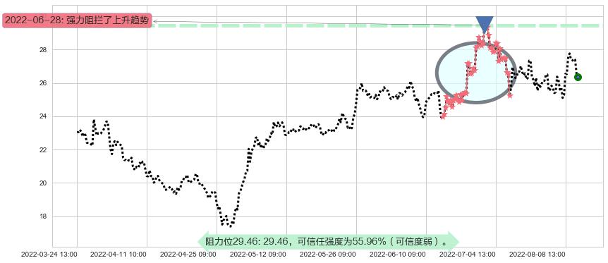 ♘ 阻力价格位29.46,可信任强度55.96%,距离最后交易2022-08-12 14:00形成的收盘价格26.34相差 +11.85%