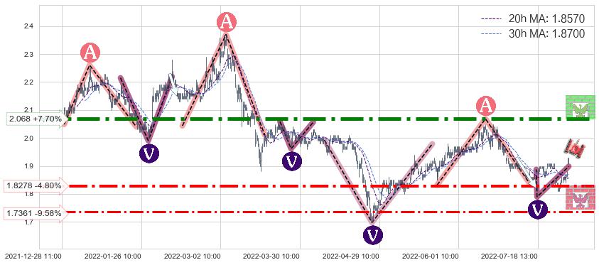 ♘ 阻力价格位2.068,可信任强度91.95%,距离最后交易2022-08-12 14:00形成的收盘价格1.9200相差 +7.70%