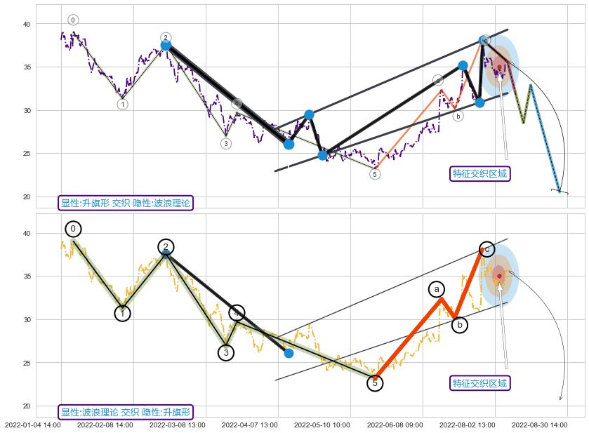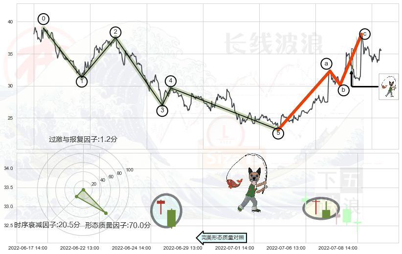 ➢ 波浪理论c点反弹终止反转下跌 🔜 升旗形临近支撑猜想转换阻力下跌 综合量化分数:37.56 【偏空】