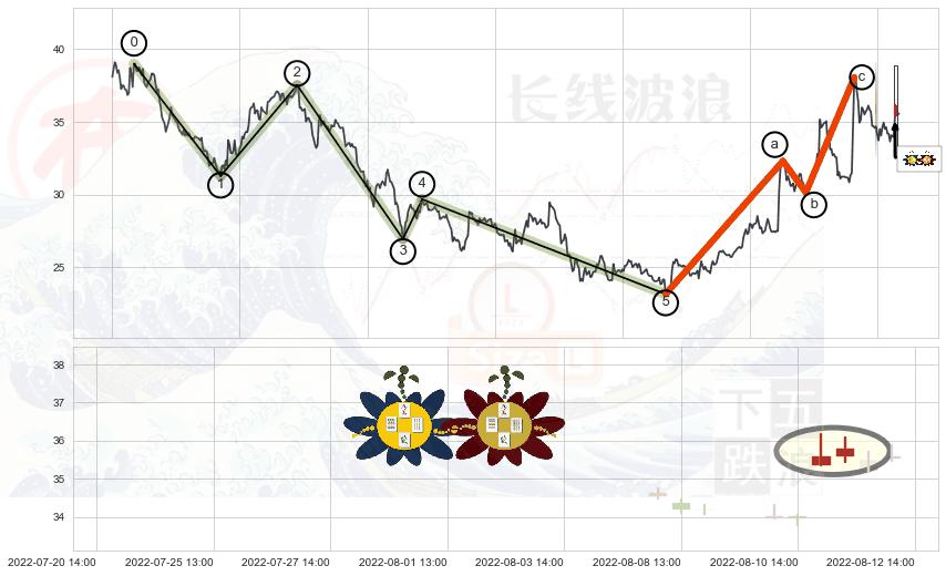 从2022-05-20 13:00至2022-08-12 14:00,共包含176个小时,阶段股价上涨36.40%,阶段股价变动位移路程比: 1 : 5,2022-07-19 13:00向⇪形成缺口,跳空上涨+10.01%
