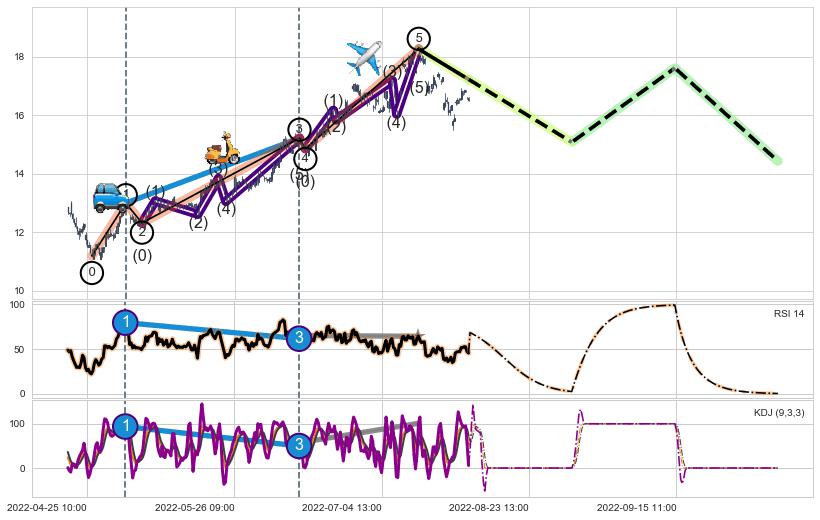 ➣ 波浪理论:猜想达到c点后小反弹终止反转下跌 → 下跌 → 【拐点】临近 → 阶段均值回复结束后继续大周期趋势跟踪