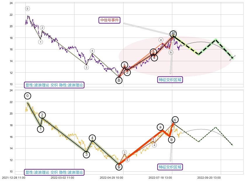 从2022-05-05 11:00至2022-05-19 09:00,共包含50个小时,阶段股价下跌-2.71%,阶段股价变动位移路程比: 1 : 13