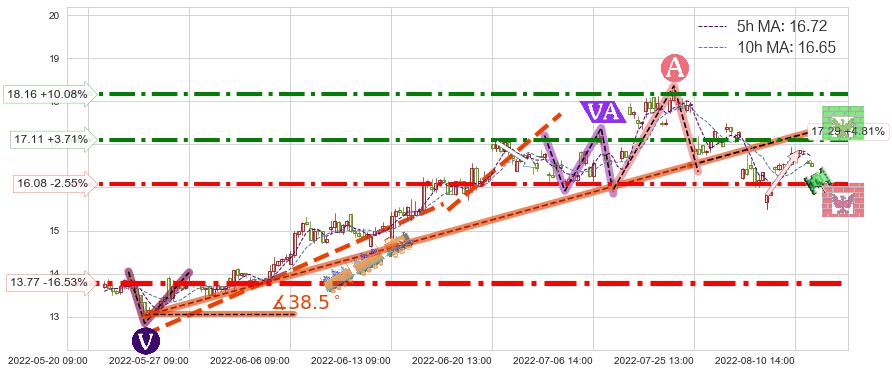 ♘ 阻力价格位17.11,可信任强度71.19%,距离最后交易2022-08-12 14:00形成的收盘价格16.50相差 +3.71%