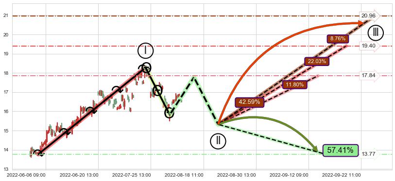 ➢ 循环浪继续向上【最低】位置(09-13:12, 17.84),匹配聚类样本比例27.72%, 可能性概率11.80%