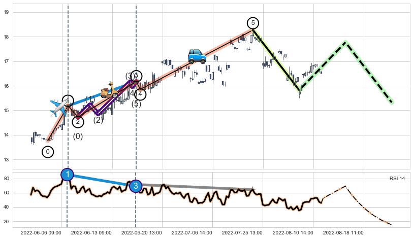 ➣ 波浪理论:猜想止涨 → 下跌 →【拐点】浪5已完成 → 大趋势均值回复