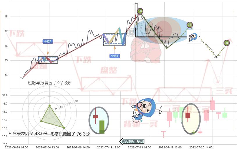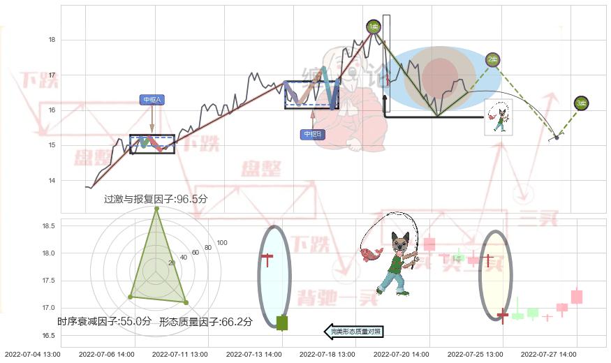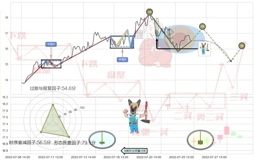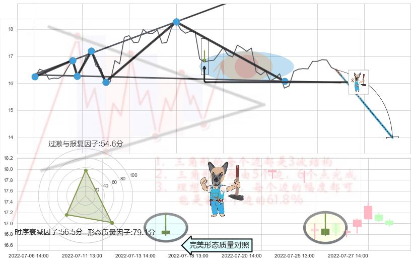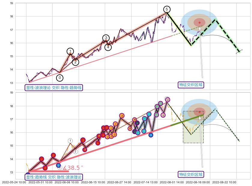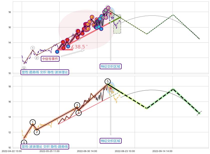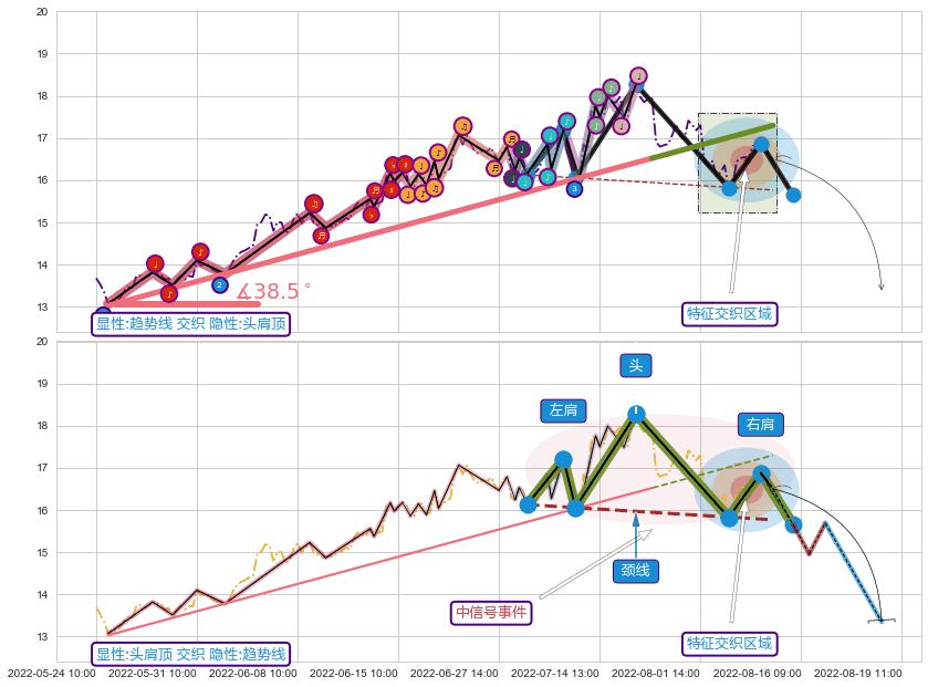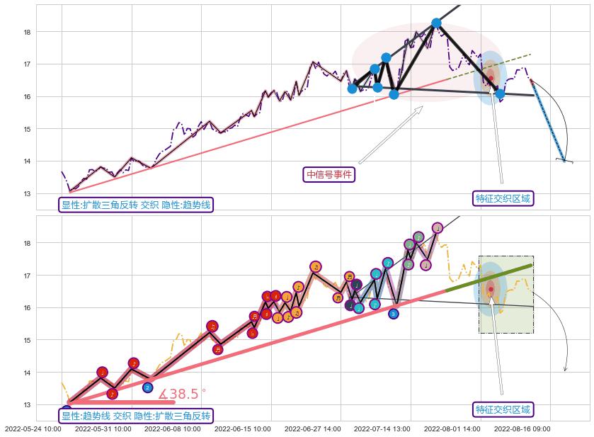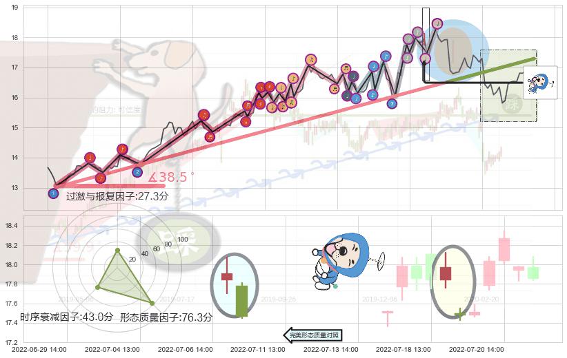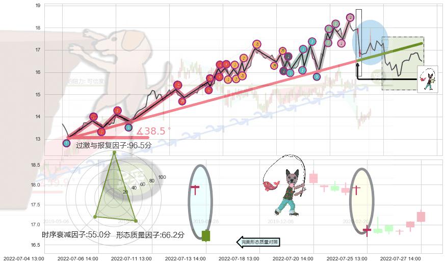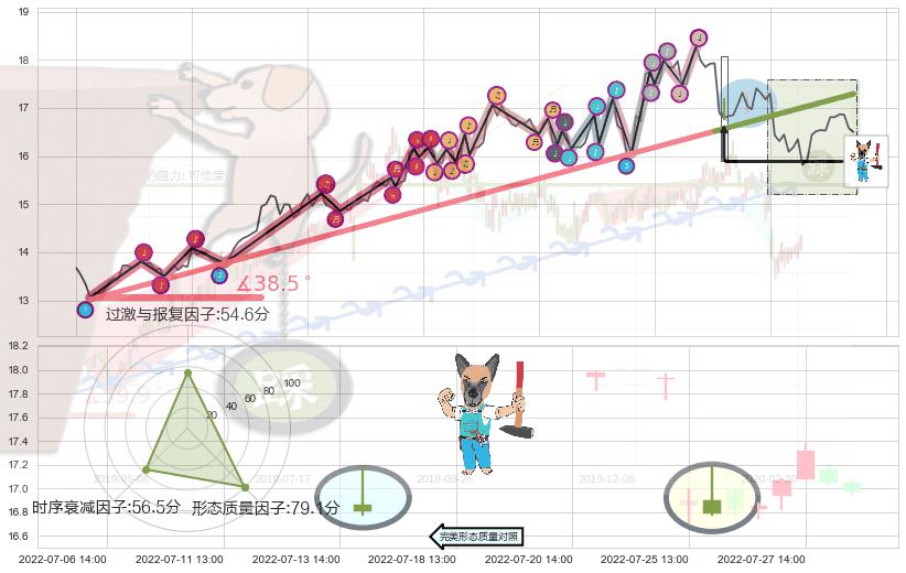 ➢ 2022-05-24 14:00-2022-07-22 14:00上升趋势存在反转[风险],其原上升趋势的支撑位(17.29)已破位[强阻力信号],原上升趋势角度: 38.5˚