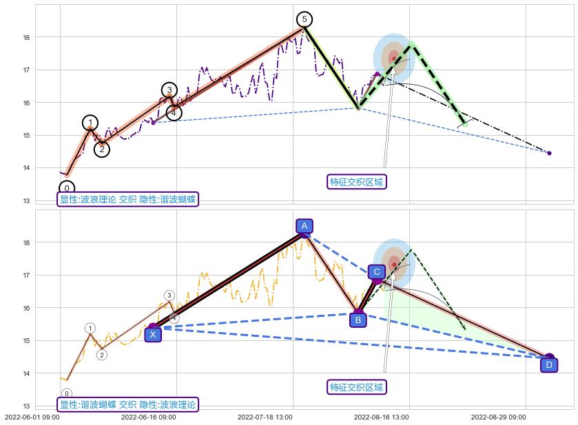 从2022-08-05 13:00至2022-08-12 14:00,共包含12个小时,阶段股价上涨4.30%,阶段股价变动位移路程比: 1 : 2