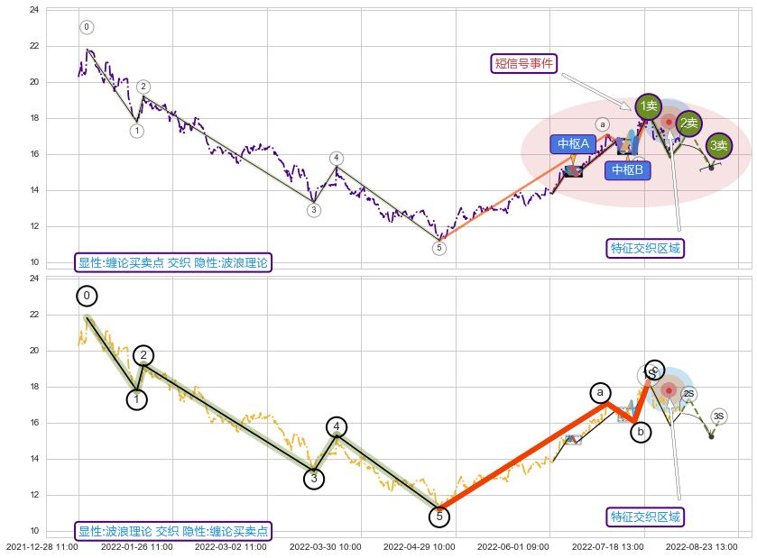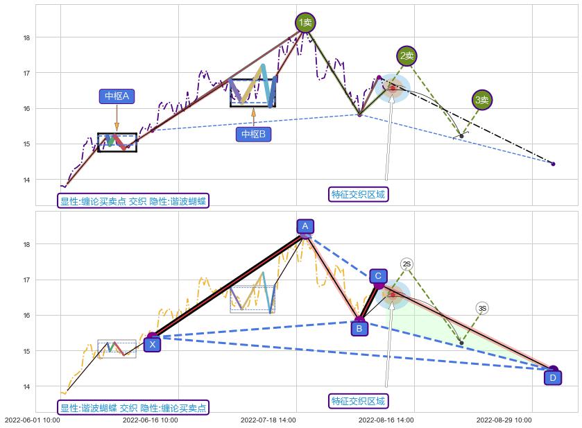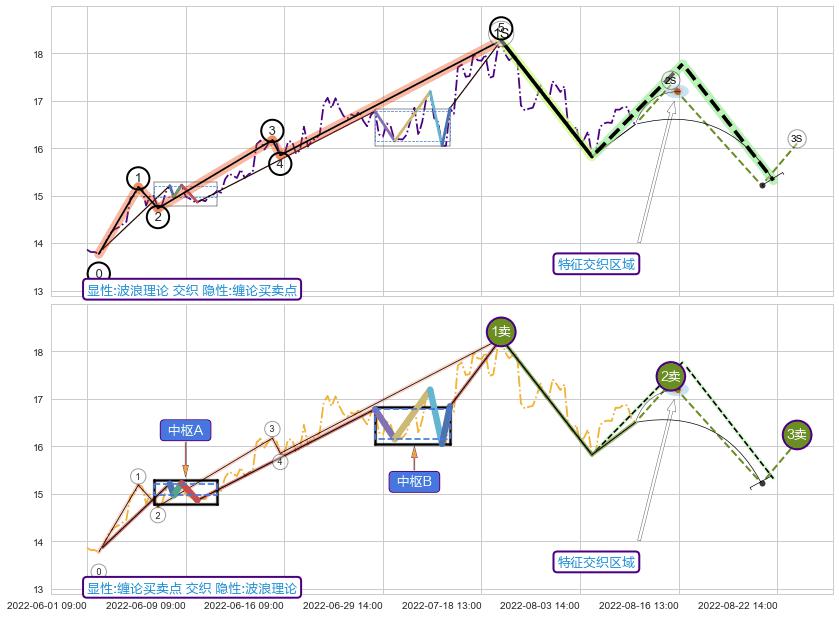➣ 缠论买卖点:猜想2卖持续蓄力下跌至3卖 → 下跌 → 风险信号 → 小趋势跟踪