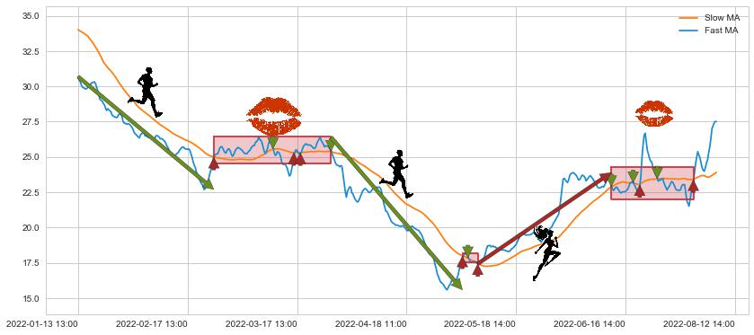 06-14 10:00至07-28 14:00 慢线与快线多次接触,存在上下穿越,有缠绕