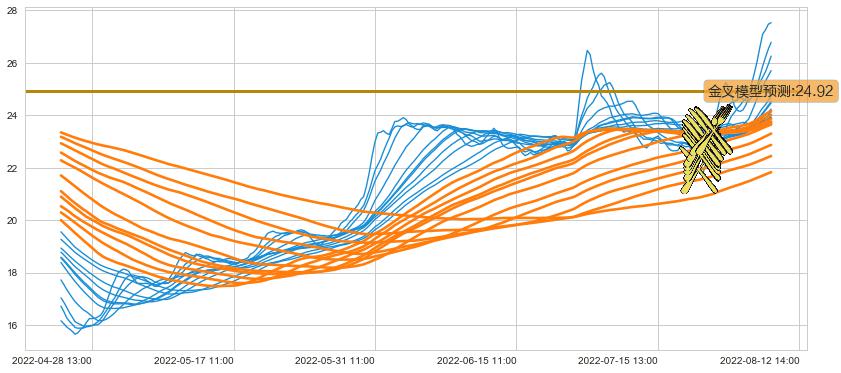 ➢ 60小时均线于(07-28 14:00: 23.40)形成【金叉】基于【金叉历史模型】预测金叉后最高波峰价格: 25.64, 金叉后最高价格27.66,已经上涨超出预测最高波峰价格, 预期回调