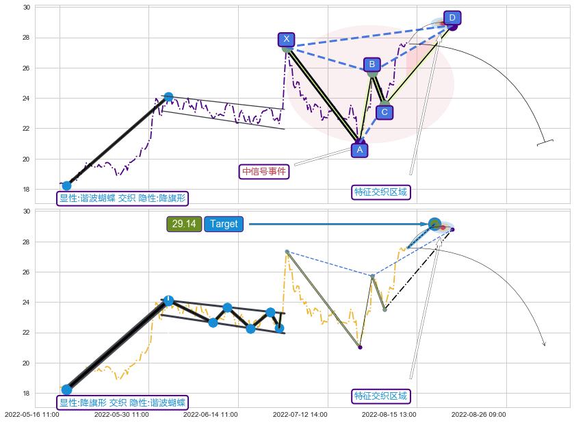 ➣ 未完成【蝴蝶】形态起点X: 06-27:13, 已到达C点: 08-04:13, 预测最终D点: 08-19:09, 共93交易小时