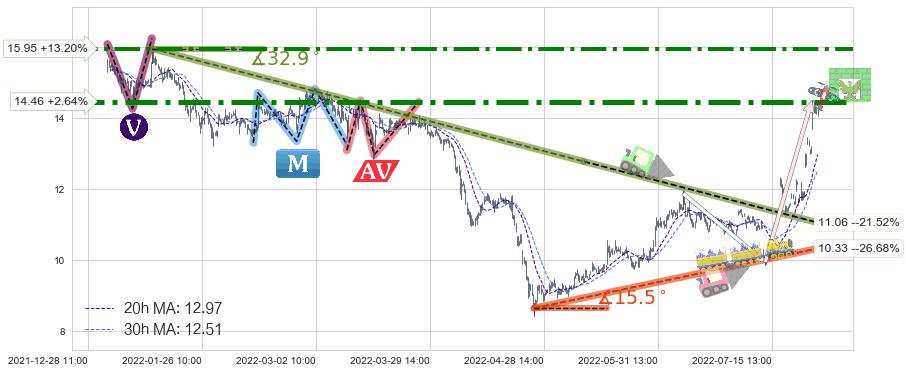 ♘ 阻力价格位14.46,可信任强度87.54%,距离最后交易2022-08-12 14:00形成的收盘价格14.09相差 +2.64%