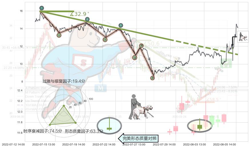 ♘ 阻力价格位15.95,可信任强度72.58%,距离最后交易2022-08-12 14:00形成的收盘价格14.09相差 +13.20%