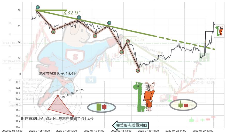 ➢ 🕰 价格走势在2022-07-14 13:00:00至2022-07-14 13:00:00期间形成看跌(高位倒锤头)流星线,残存影响值:-2.28