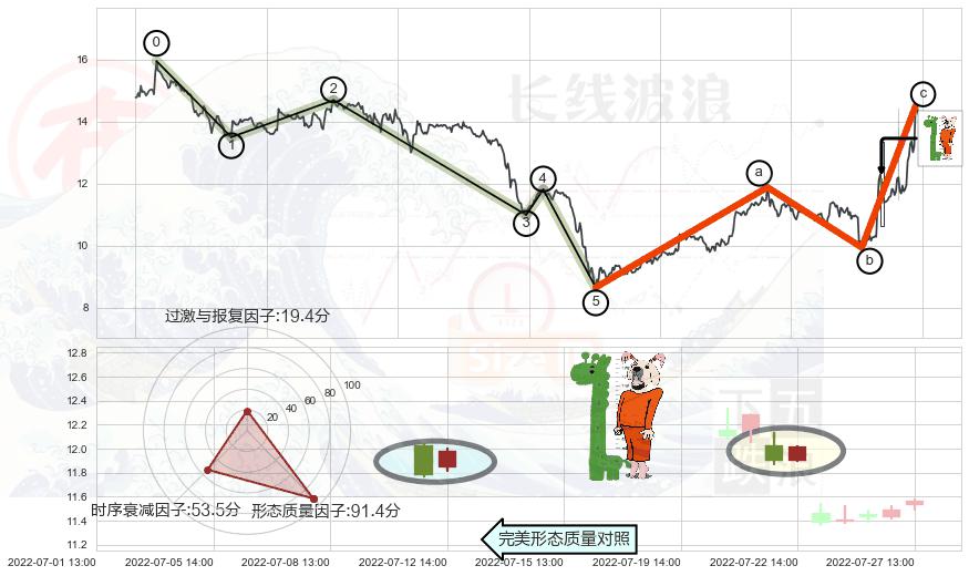 ➢ 🕰 价格走势在2022-07-28 13:00:00至2022-07-28 14:00:00期间形成底部尽头线(上山虎),残存影响值:3.54