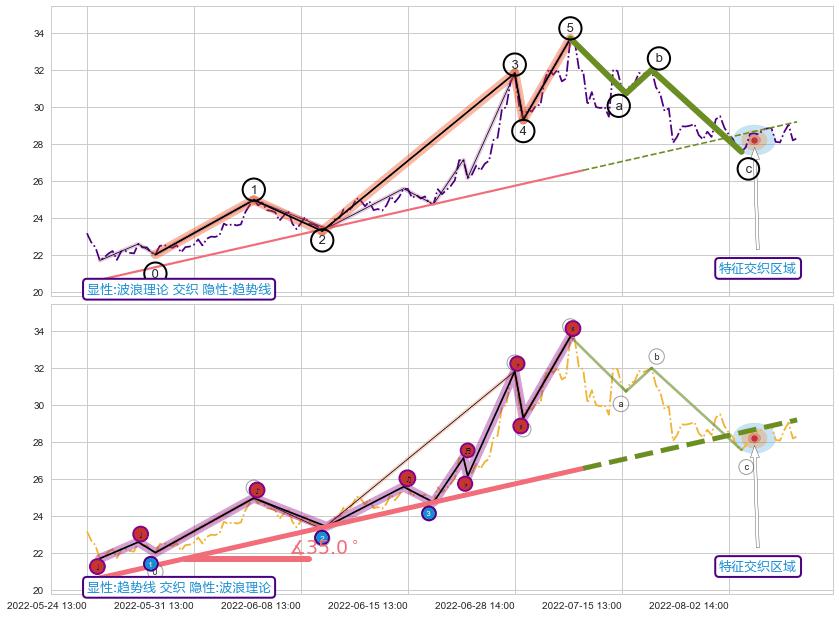 从2022-05-25 10:00至2022-07-08 14:00,共包含114个小时,阶段股价上涨40.53%,阶段股价变动位移路程比: 1 : 3,上涨趋势角度: 35.0