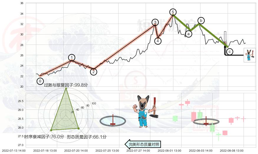 从2022-07-25 13:00至2022-08-12 14:00,共包含30个小时,阶段股价上涨1.21%,阶段股价变动位移路程比: 1 : 28