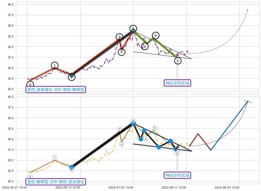 ➢ 波浪理论与降楔型信号事件周期长度级别相同,同周期信号事件