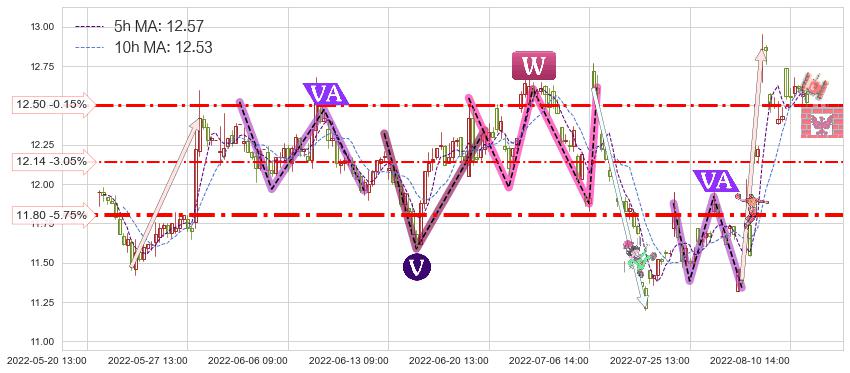 ♞ 5小时均线:12.57,10小时均线:12.53→ 快线>慢线