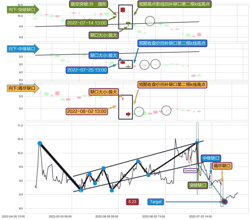 ➢ 2022-08-02 13:00形成:向下跳空【竭尽】缺口