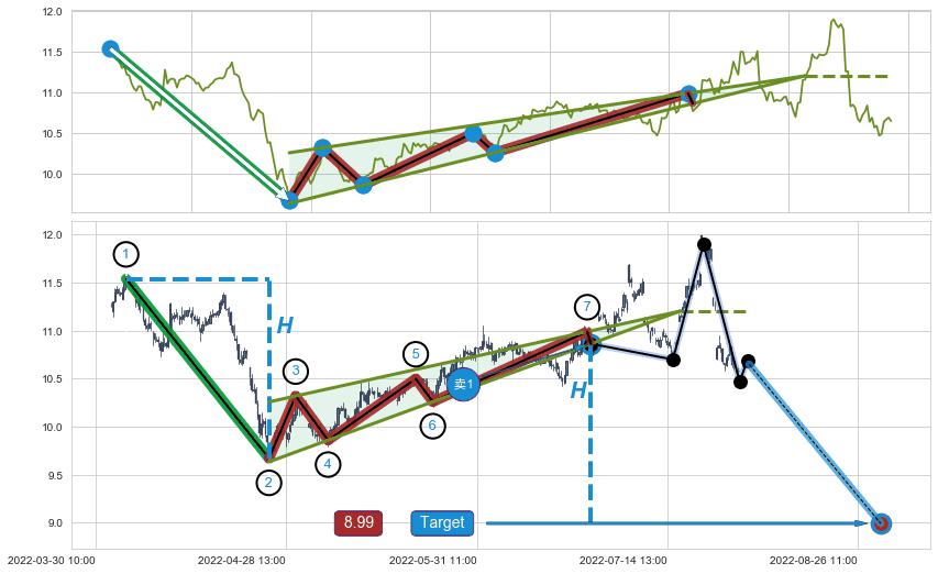 ➣ AI预测: 假定反转启动后, 第❸目标位置(03-14:13, 9.67)