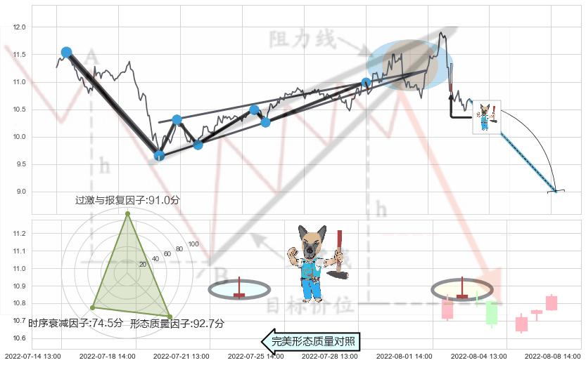 ➢ 🕰 价格走势在2022-08-08 14:00:00至2022-08-09 13:00:00期间形成吊颈线(上吊线),残存影响值:-7.43