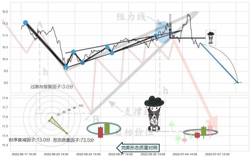 ➢ 🕰 价格走势在2022-07-13 14:00:00至2022-07-14 13:00:00期间形成下跌螺旋桨,残存影响值:-3.07