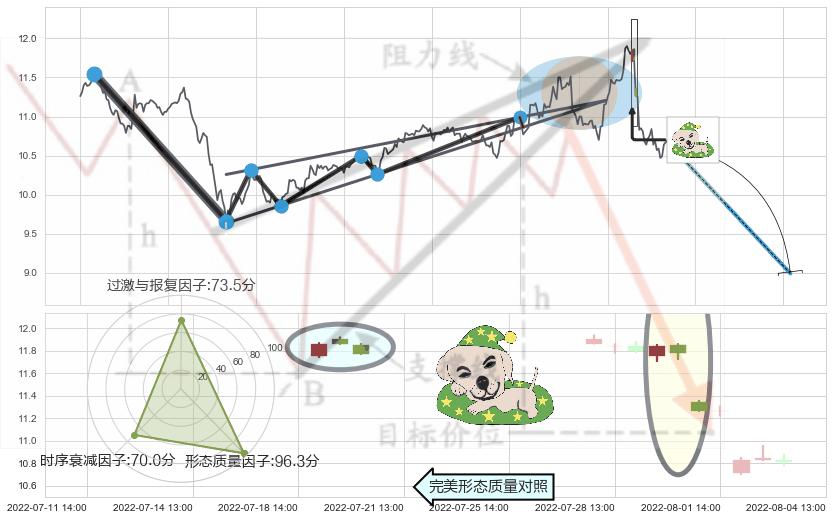 ➢ 🕰 价格走势在2022-08-04 00:00:00至2022-08-04 00:00:00期间形成单针探底(定海神针),残存影响值:5.45