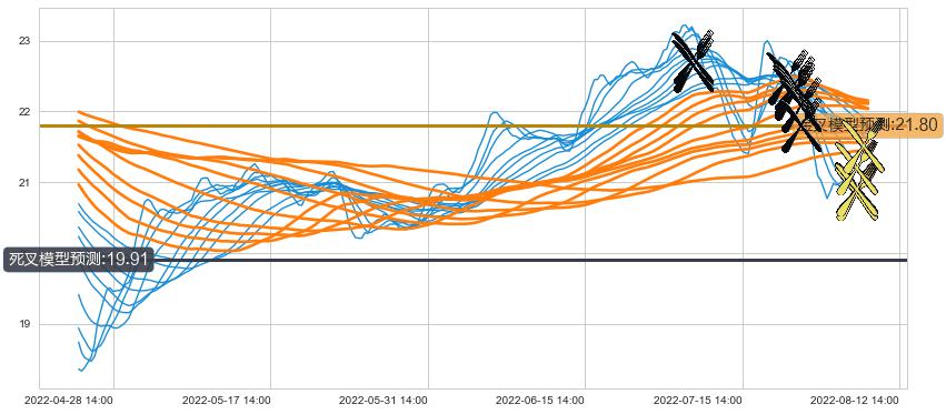 ➣ 40小时均线于(07-05 14:00: 22.64)形成【死叉】基于【死叉历史模型】预测死叉后最低波谷价格: 21.18, 死叉后最低价格20.37,已经下跌超出预测最低波谷价格, 预期反弹