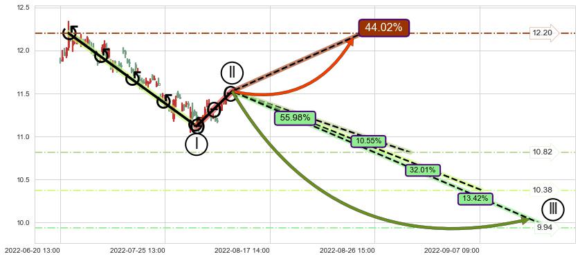 ♘ 阻力价格位12.11,可信任强度92.73%,距离最后交易2022-08-12 14:00形成的收盘价格11.41相差 +6.12%