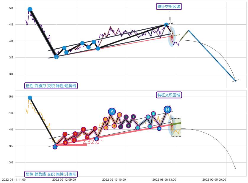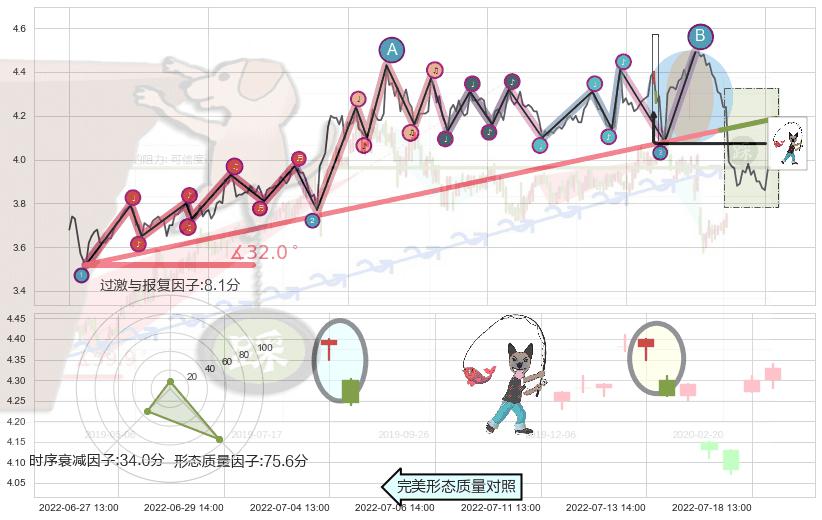 ➢ 2022-04-27 11:00-2022-07-29 14:00上升趋势存在反转[风险],其原上升趋势的支撑位(4.19)已破位[强阻力信号],原上升趋势角度: 32.0˚