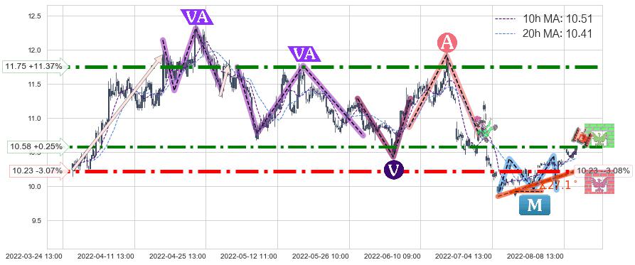♘ 阻力价格位10.58,可信任强度70.44%,距离最后交易2022-08-12 14:00形成的收盘价格10.55相差 +0.25%