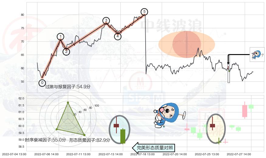 ➢ 🕰 价格走势在2022-07-22 14:00:00至2022-07-25 13:00:00期间形成下跌螺旋桨,残存影响值:-5.23