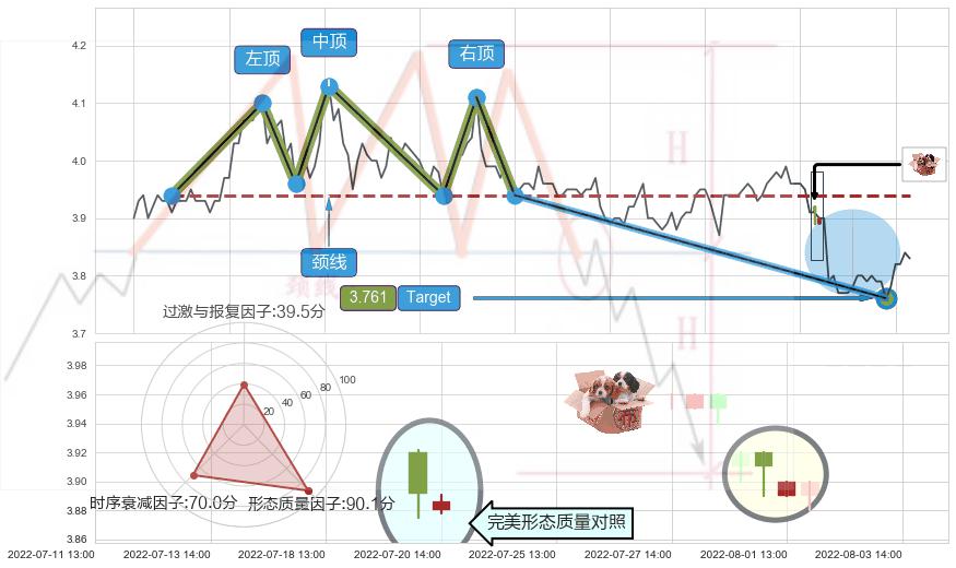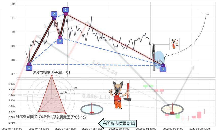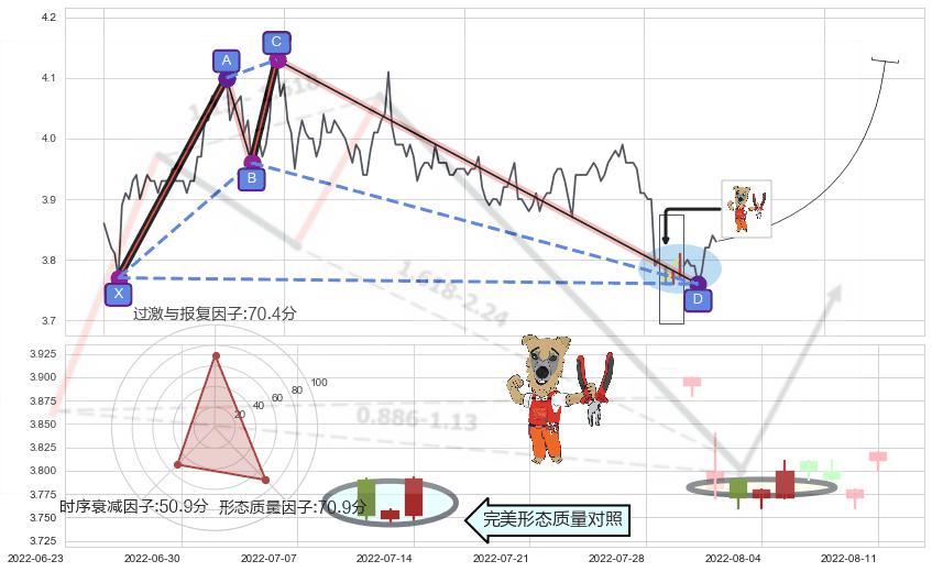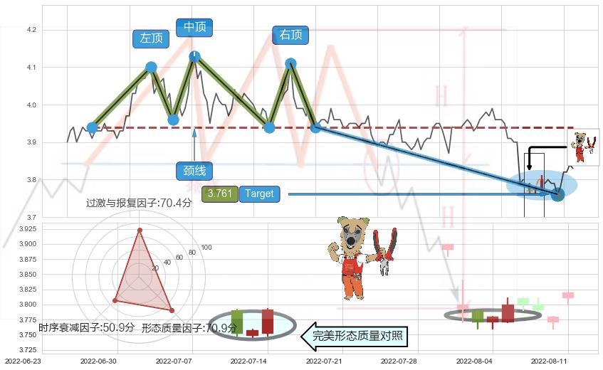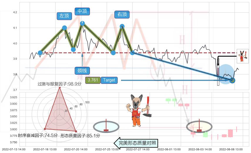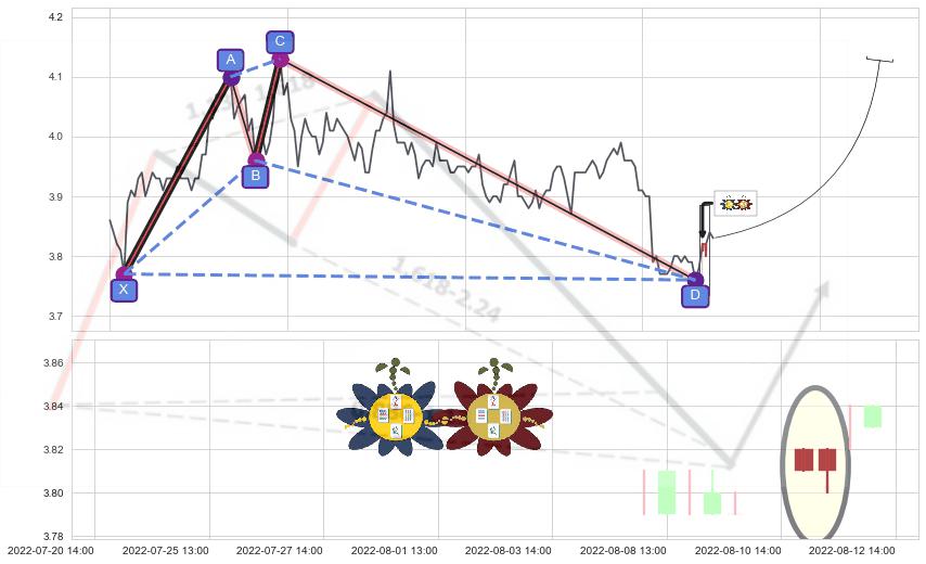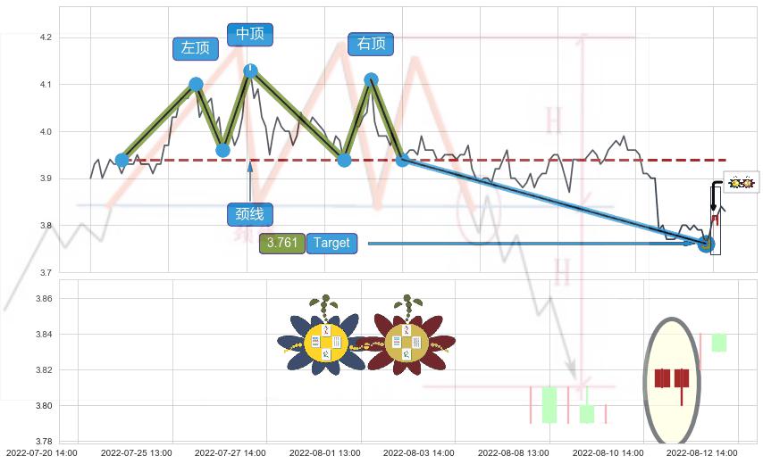 ♘ 阻力价格位3.898,可信任强度84.42%,距离最后交易2022-08-12 14:00形成的收盘价格3.830相差 +1.77%