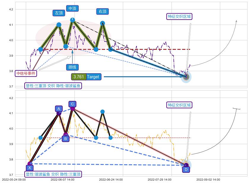 ➢ 三重顶属【中级别信号事件】谐波鲨鱼属【长级别信号事件】中长周期组合信号事件,中长事件长度比48.15%