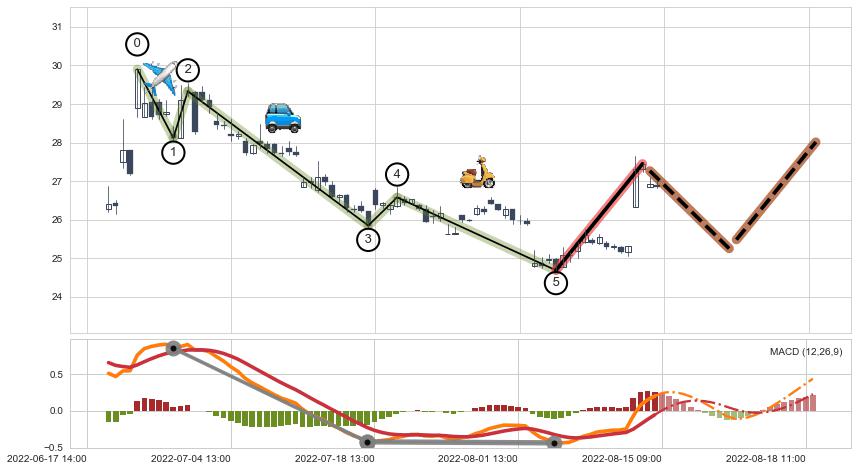 ➣ 波浪理论:猜想达到c点后小反弹终止反转下跌 → 下跌 → 【拐点】临近 → 阶段均值回复结束后继续大周期趋势跟踪