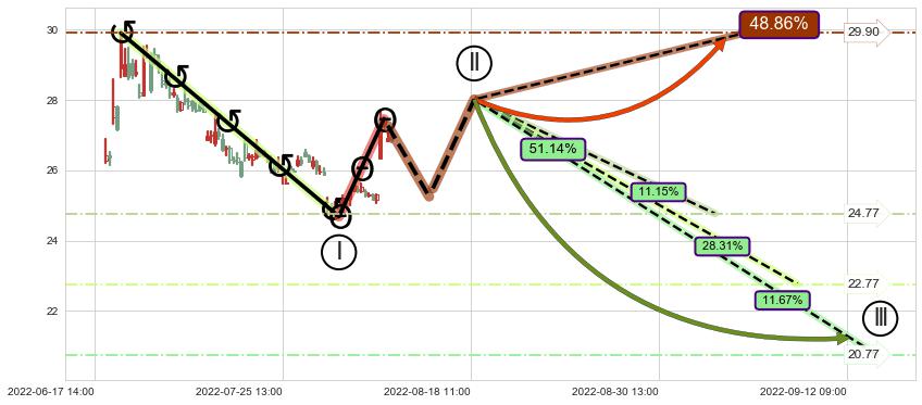 ♘ 支撑价格位23.45,可信任强度74.08%,距离最后交易2022-08-12 14:00形成的收盘价格26.85相差 -12.65%